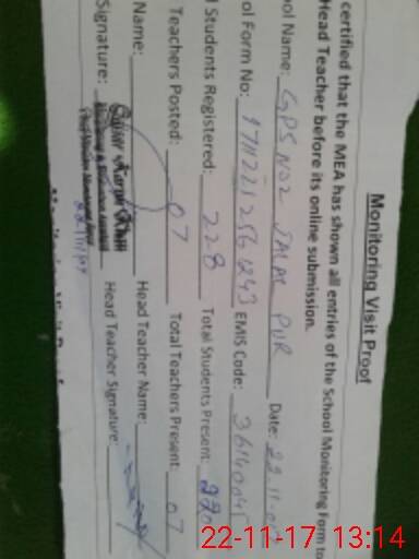 | EMIS Code: 36140045 | Name of School: GPS No. 2 JALALPUR PIRWALA | |||