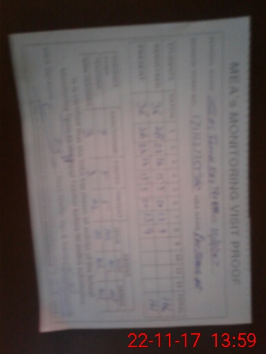 | Monitoring Date: 22-11-2017 | Start Time: 22-11-2017 12:58 PM | End Time: 22-11-2017 02:01 PM | Name of MEA: Ra**** Sh**** Al**** ex**** | |