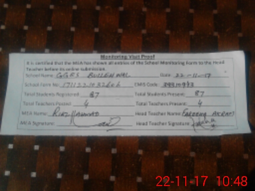 | Attendance Register | Head Teacher | MEA with School | Visit Proof |