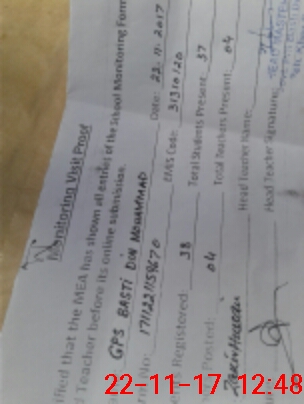 | Monitoring Date: 22-11-2017 | Start Time: 22-11-2017 11:59 AM | End Time: 22-11-2017 12:51 PM | Name of MEA: Za**** Hu**** | |