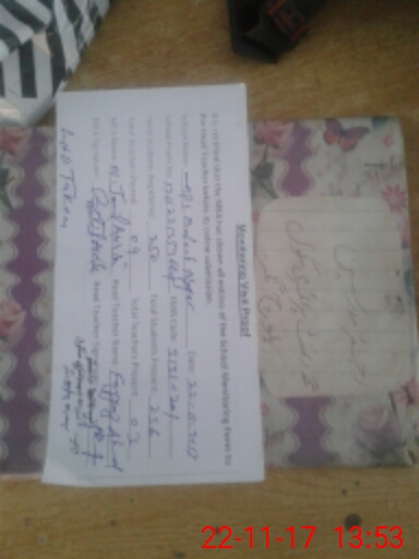 | School Visited by School Health & Nutrition Supervisor (No. of Visits) | 1 | Name1: | Sabir Hussain | Name2: | Nil |