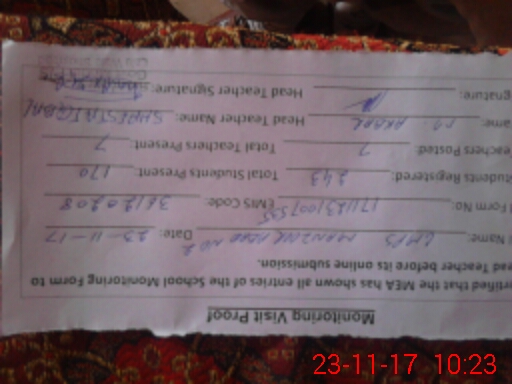 | Attendance Register | Head Teacher | MEA with School | Visit Proof |