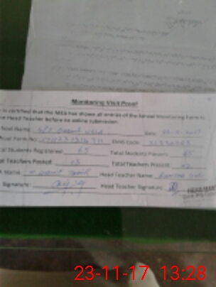 | Attendance Register | Head Teacher | MEA with School | Visit Proof |