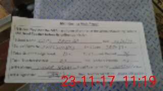 | Monitoring Date: 23-11-2017 | Start Time: 23-11-2017 10:57 AM | End Time: 23-11-2017 11:21 AM | Name of MEA: Za**** Iq**** Kh**** | |