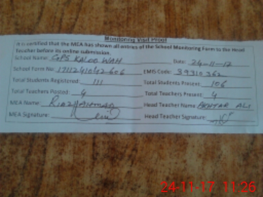 | EMIS Code: 39310362 | Name of School: GPS KALOO WAH | |||