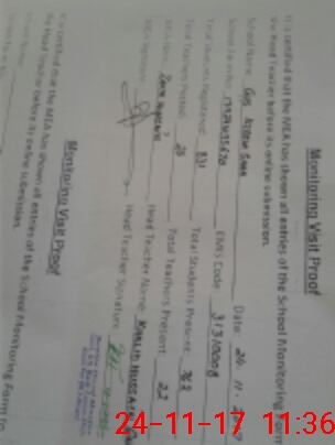 | Attendance Register | Head Teacher | MEA with School | Visit Proof |