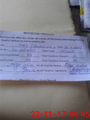 | Monitoring Date: 23-11-2017 | Start Time: 23-11-2017 09:08 AM | End Time: 23-11-2017 09:46 AM | Name of MEA: Na**** Kh**** (R**** | |