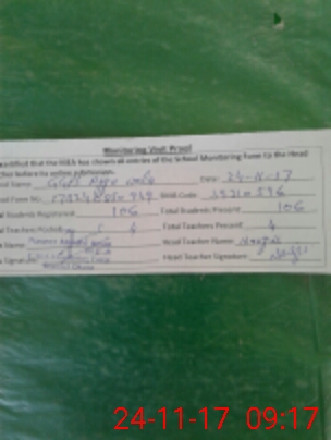 | Attendance Register | Head Teacher | MEA with School | Visit Proof |