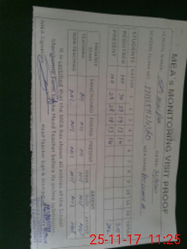 | Attendance Register | Head Teacher | MEA with School | Visit Proof |