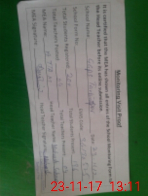| Attendance Register | Head Teacher | MEA with School | Visit Proof |