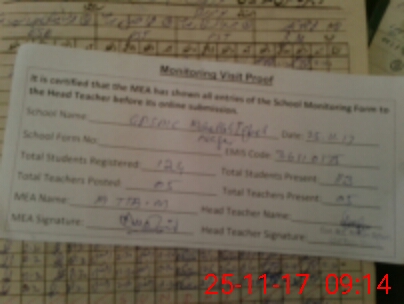| Attendance Register | Head Teacher | MEA with School | Visit Proof |