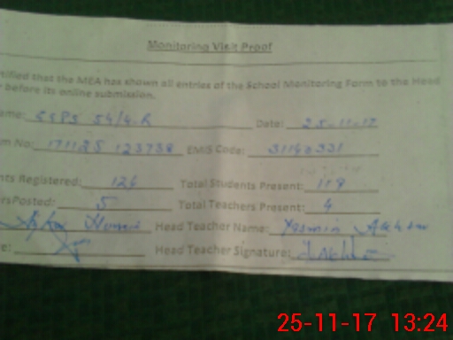 | Attendance Register | Head Teacher | MEA with School | Visit Proof |