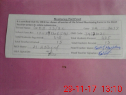 | Attendance Register | Head Teacher | MEA with School | Visit Proof |