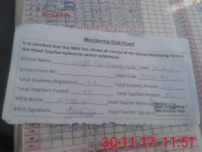 | Attendance Register | Head Teacher | MEA with School | Visit Proof |