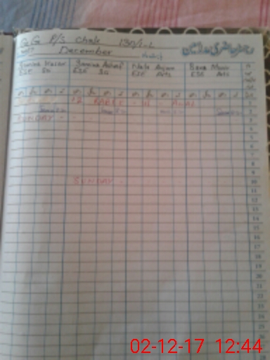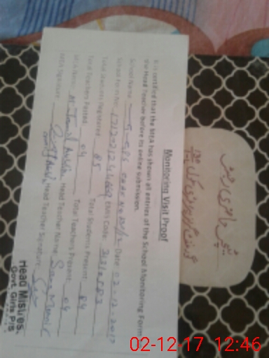 | School Visited by School Health & Nutrition Supervisor (No. of Visits) | 1 | Name1: | Muhammad Younas | Name2: | Nil |