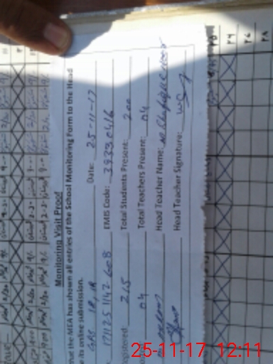 | Attendance Register | Head Teacher | MEA with School | Visit Proof |