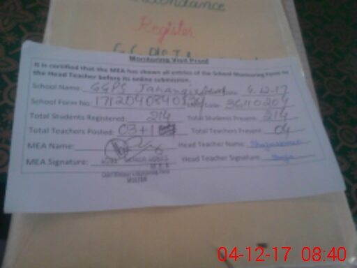 | Attendance Register | Head Teacher | MEA with School | Visit Proof |