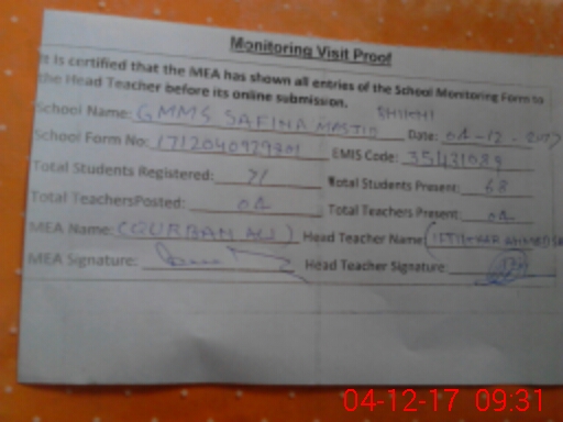| EMIS Code: 35431089 | Name of School: GMMS SAFINA MASJID BHIKHI | |||