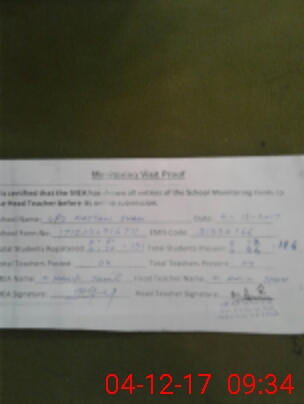 | Attendance Register | Head Teacher | MEA with School | Visit Proof |