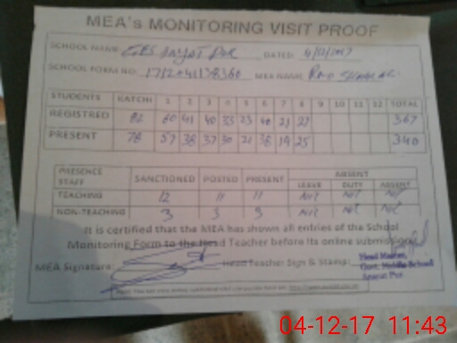 | Attendance Register | Head Teacher | MEA with School | Visit Proof |