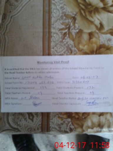 | Attendance Register | Head Teacher | MEA with School | Visit Proof |