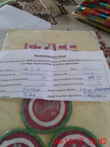 | Attendance Register | Head Teacher | MEA with School | Visit Proof |
