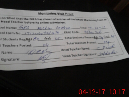| EMIS Code: 35410706 | Name of School: GPS MUSLIM LEAGUE VILLAGE | |||