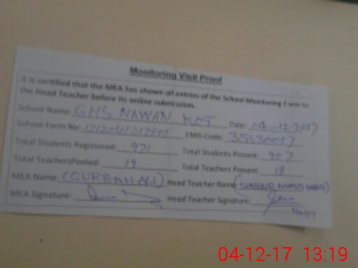 | EMIS Code: 35430017 | Name of School: GHS NAWAN KOT | |||