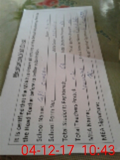 | Attendance Register | Head Teacher | MEA with School | Visit Proof |