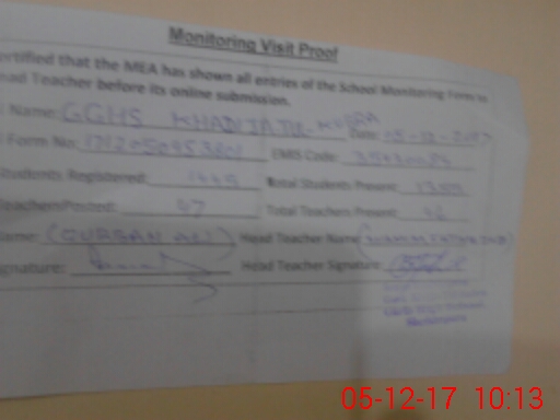 | EMIS Code: 35430084 | Name of School: GGHS KHADIJA-TUL-KUBRA SHEIKHUPURA | |||