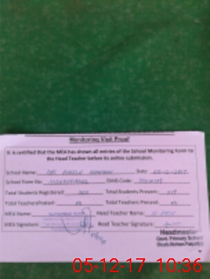 | Certified that this School was Inspected by the Undersigned MEA/DMO Today and the Information Stated Above is as Per Record. | |||||
