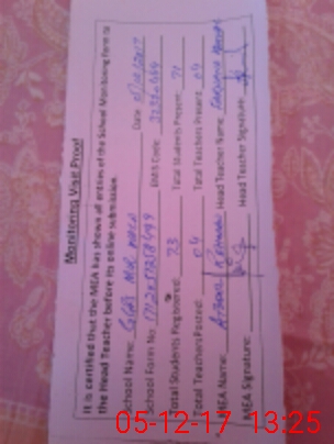 | Attendance Register | Head Teacher | MEA with School | Visit Proof |