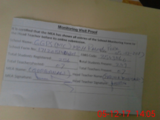 | Certified that this School was Inspected by the Undersigned MEA/DMO Today and the Information Stated Above is as Per Record. | |||||
