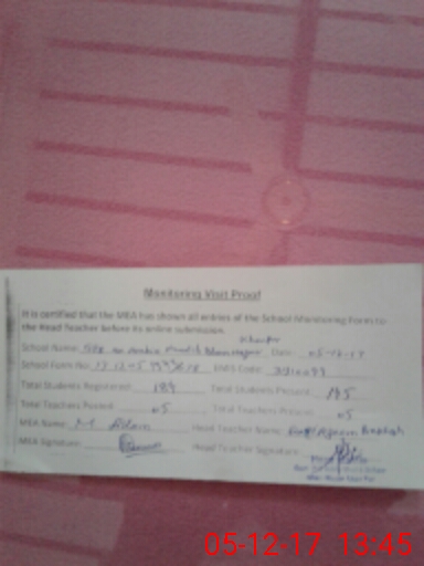 | Total no. of Classrooms: 5 No. of Classrooms Used for Teaching: 5 No. of Classrooms Storing Old Furniture, FTBs, etc: 0Comments if Any: No own school building but occupied on hired payment made by education department |