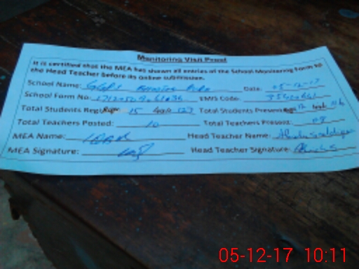 | Attendance Register | Head Teacher | MEA with School | Visit Proof |