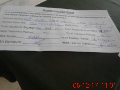 | Attendance Register | Head Teacher | MEA with School | Visit Proof |