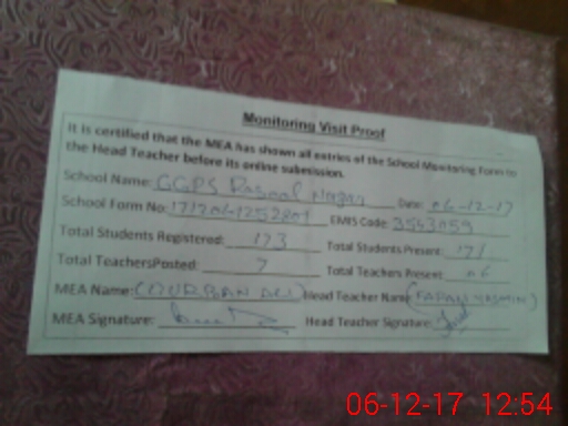 | EMIS Code: 35431159 | Name of School: GGPS MC RASOOL NAGAR | |||