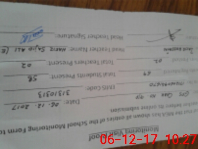 | Attendance Register | Head Teacher | MEA with School | Visit Proof |