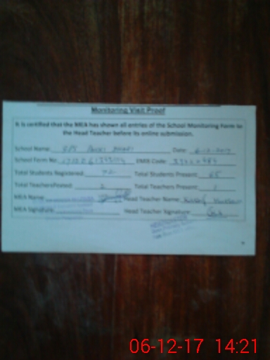 | Attendance Register | Head Teacher | MEA with School | Visit Proof |