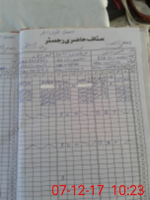 | CNIC | Full Name | Designation | R/C | Absence During Last Calender Month |