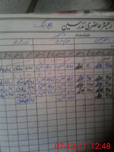 | CNIC | Full Name | Designation | R/C | Absence During Last Calender Month |
