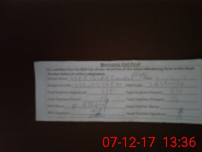 | Attendance Register | Head Teacher | MEA with School | Visit Proof |