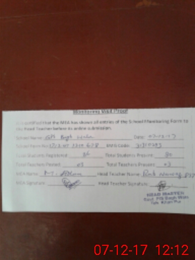 | EMIS Code: 31310293 | Name of School: GPS BAGH WALA | |||