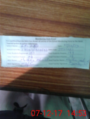| Attendance Register | Head Teacher | MEA with School | Visit Proof |