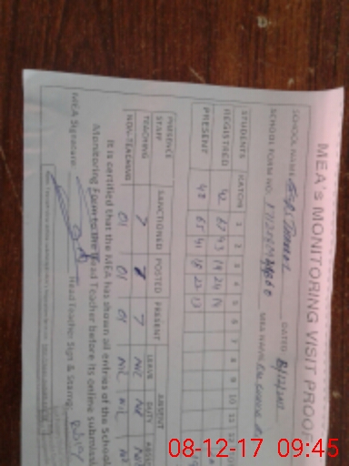 | Attendance Register | Head Teacher | MEA with School | Visit Proof |