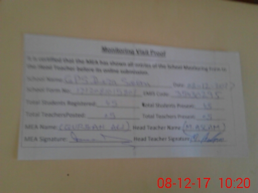 | Attendance Register | Head Teacher | MEA with School | Visit Proof |