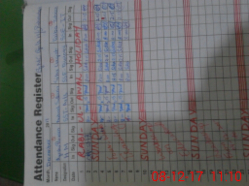 | CNIC | Full Name | Designation | R/C | Absence During Last Calender Month |