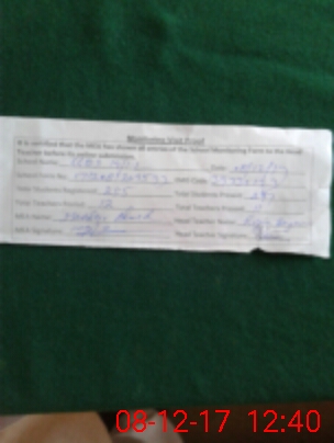 | Attendance Register | Head Teacher | MEA with School | Visit Proof |