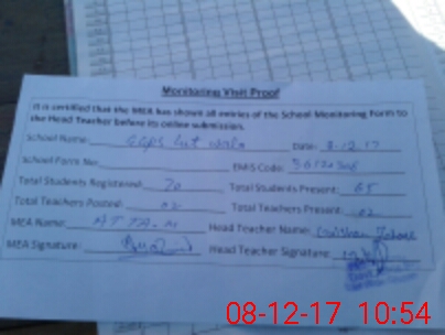 | Attendance Register | Head Teacher | MEA with School | Visit Proof |
