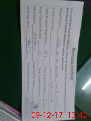 | Certified that this School was Inspected by the Undersigned MEA/DMO Today and the Information Stated Above is as Per Record. | |||||